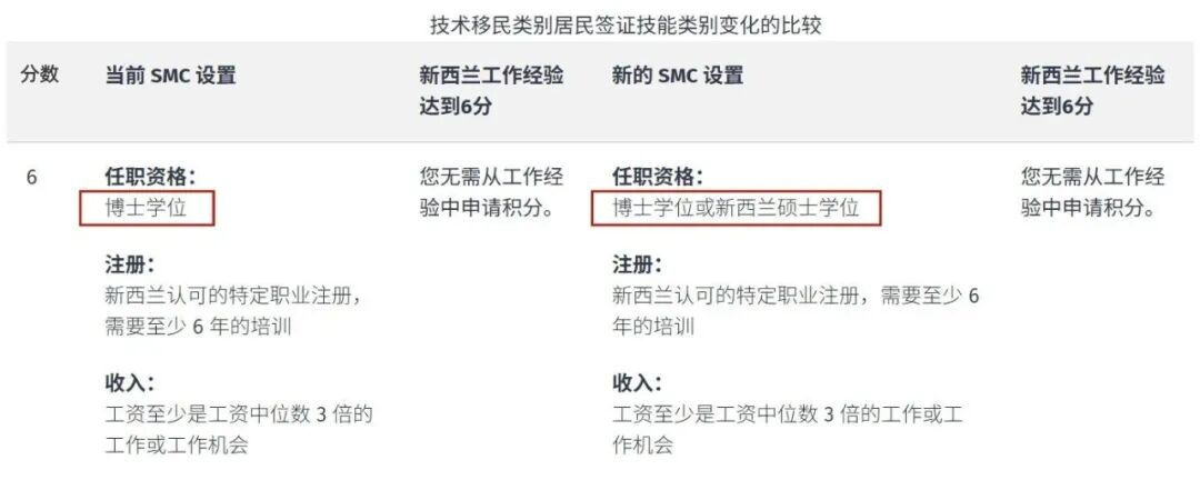 在新西兰完成硕士学位即可直接获得6分,不再要求额外工作经验;