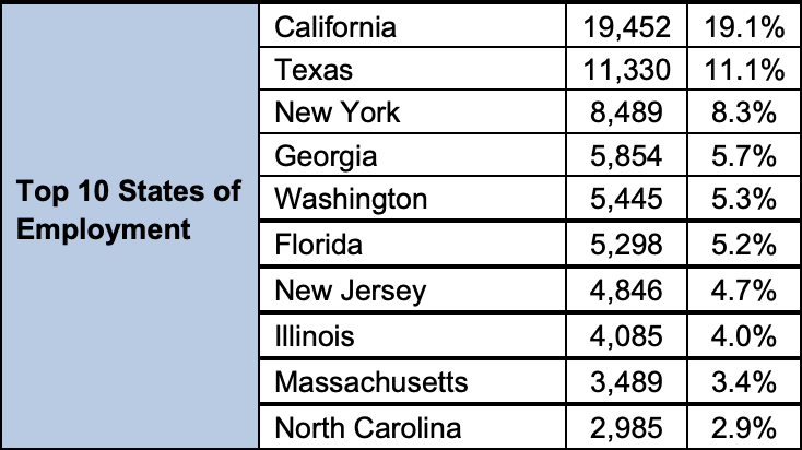 这一分布表明,PERM申请仍集中在技术岗位和产业集群密集的传统大州,整体格局保持稳定。同时,这也提示外籍职工在选择工作地点时,仍倾向于就业机会和移民支持相对充足的州份。
